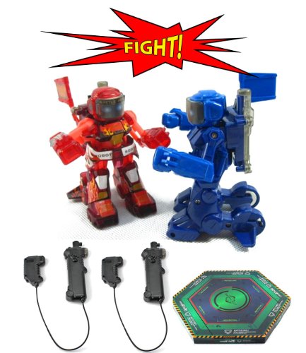 - Komplett-Set: 2 x 2.4GHz ferngesteuerter Kampfroboter mit integr. wiederaufladbarem Lipo-Akku, 2 x Fernbedienungen, Battle-Arena