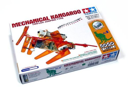 IntroductionThe beloved kangaroo from AustraliaTamiya presents the robot replica of the beloved kangaroo from Australia. This amazing kangaroo-robot jumps by moving its rear legs simultaneously to go forward. When walking slowly, it also uses its front legs (just like they do down under) and when running quickly, it uses its tail for balance. Legs and body on which the gearbox is mounted employ transparent-colored parts, giving the kangaroo a funky look. Reverse switch is also transparent, giving you a peek at the kangaroo`s internal mechanisms. All you need includedAssembly is very simple with use of screws and snap-lock parts. Cable ends are rubber capped with cut areas pre-marked for easy wiring. When using high-speed gearbox, the kangar...